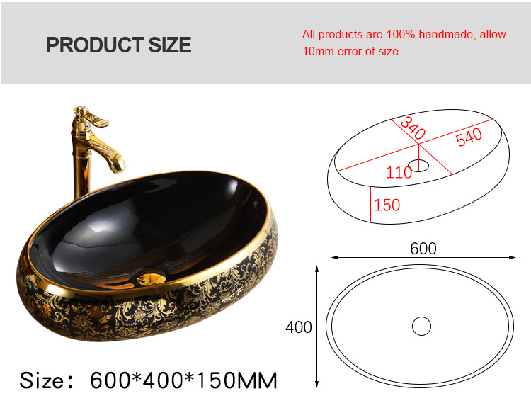 Antique oval banyo lavabo black and gold plated wash basin countertop ceramic hand wash bathroom cabinet sink