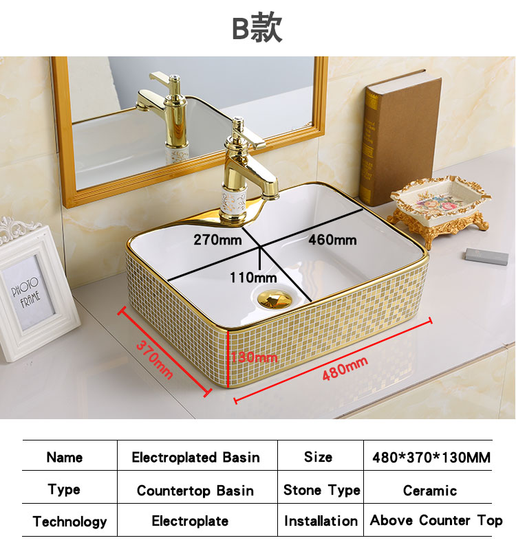Bathroom Lavabo Wastafel Kamar Mandi Gold Luxury Hotel Vanity Art Wash Basin Countertop Sink