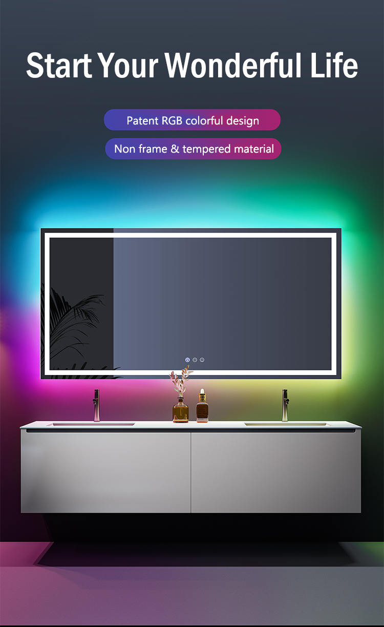Bathroom RGB Color Changing Frameless Bluetooth Smart Mirror