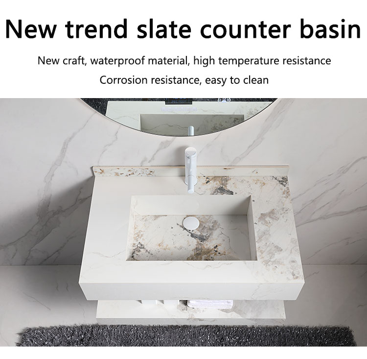 Bathroom Rock Slab Marbled Porcelain Solid Surface Cabinet