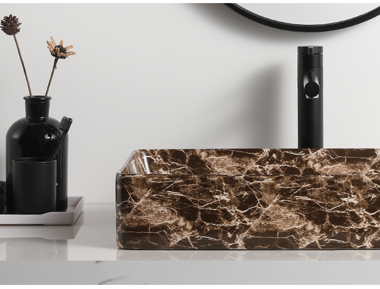 Brown fancy marble pattern porcelain wash hand basin