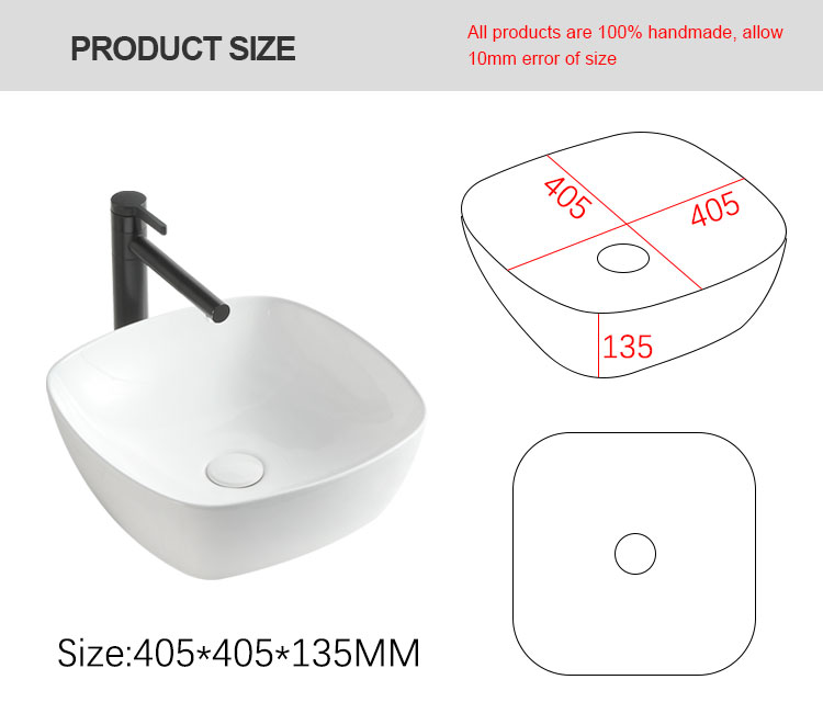 Hot Selling Vasque Salle De Bain Square Countertop Porcelain Sink Sanitary Wares Bathroom Wash Basin Sink