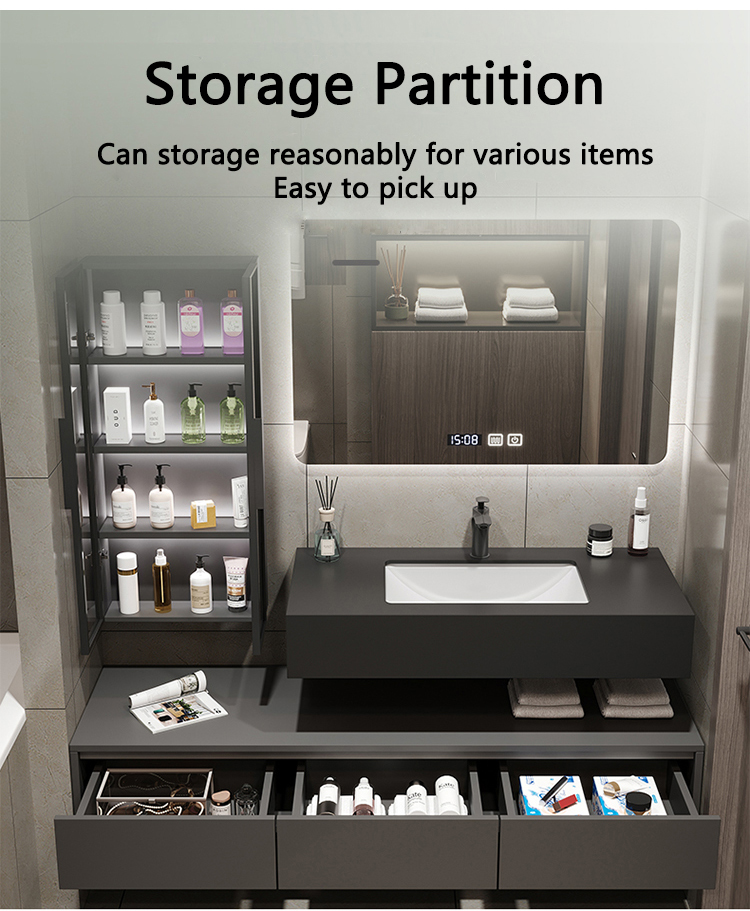 2022 new grey marble bathroom cabinet Modern solid wood Floating bathroom vanity with mirror
