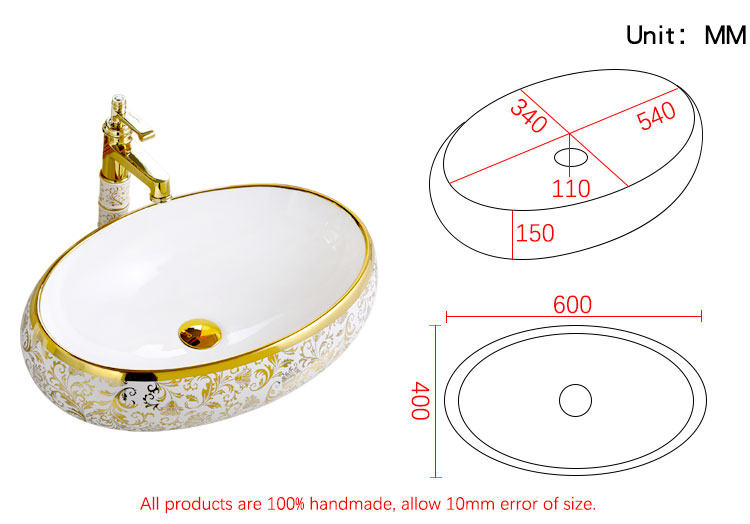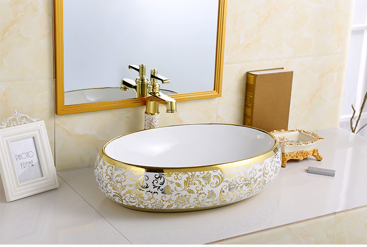 ODM OEM Goudkleurig Lavabo Luxury Ceramic Art Oval wastafel Bathroom Vanities Countertop Basin Royal Rose Gold Wash Basin Sinks
