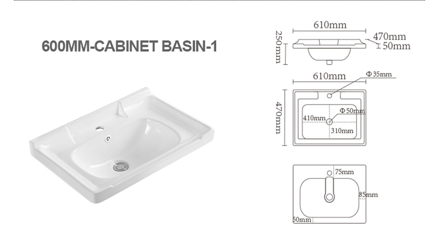 The sizes of cabinets and basins we sell are very comprehensive, covering from 60 to 120cm. Meet the different needs of various customers to the greatest extent. The cabinet basin has a smooth white glaze, which is effortless for daily cleaning and can be wiped gently. The round edges enable users to avoid bumps in daily use. The thickness control is also adjusted to a scientific value, so that the cabinet basin can not only ensure the quality, but also reflect the beauty.
