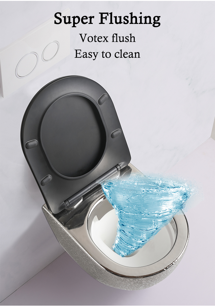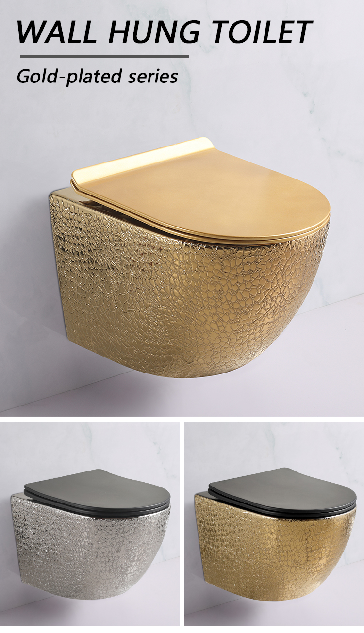 Electroplated gold-silver wall-mounted toilet with a choice of black and gold lid colours