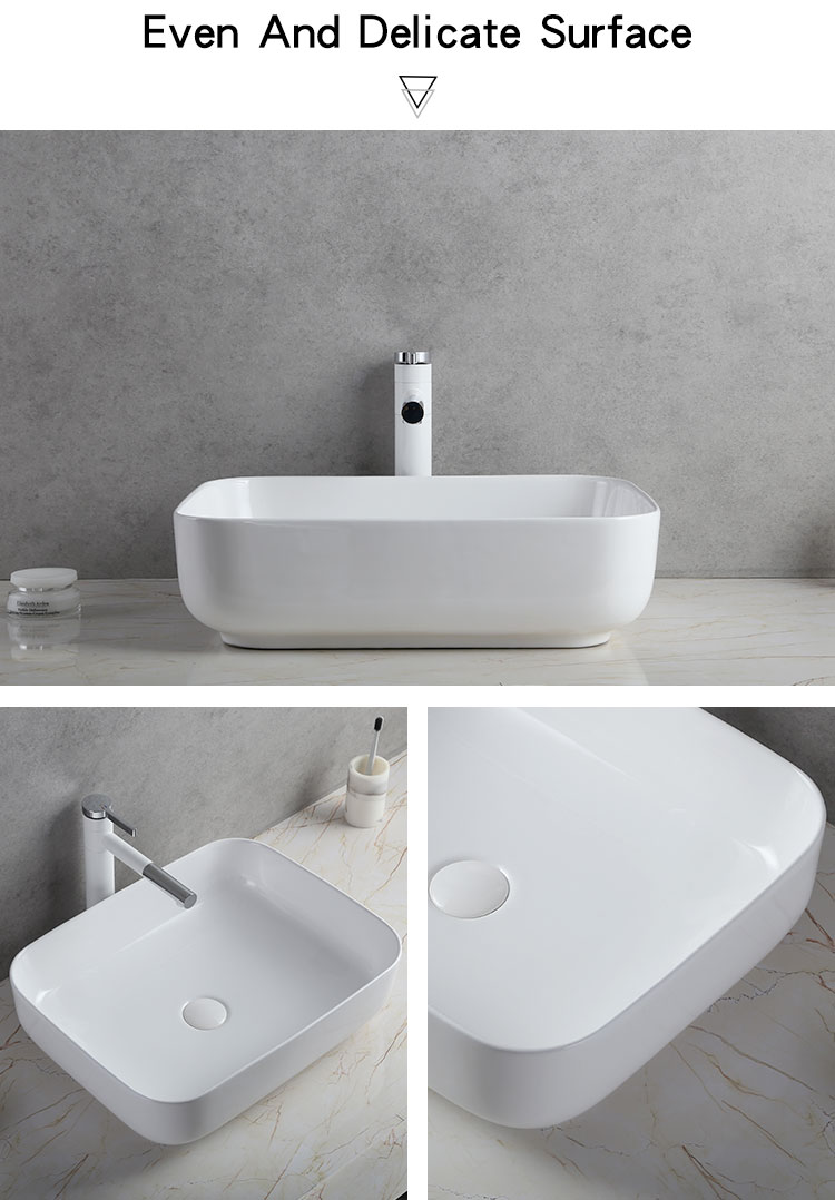 Modern Bathroom Sink Rectangular Smooth Countertop Ceramic Wash Basin Sink