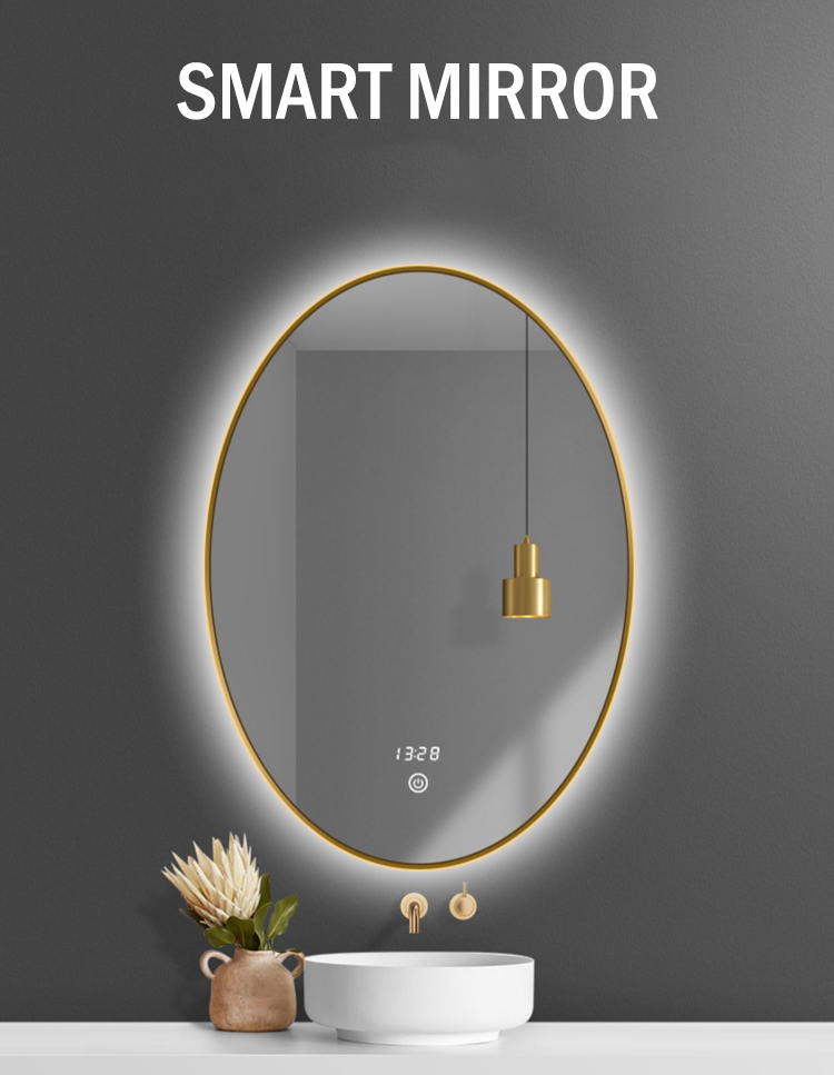 Oval Shaped Simple Design Metal Frame Smart Bathroom Mirror