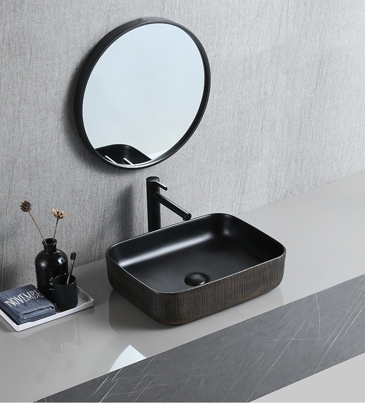 Stylish Lavabo basin bathroom handmade table top porcelain basin matte black fancy washing basin
