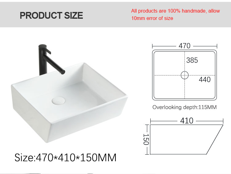 Unique Design Rectangular Above Mount Wash Basin Sink Ceramic Bathroom Vanity Basin