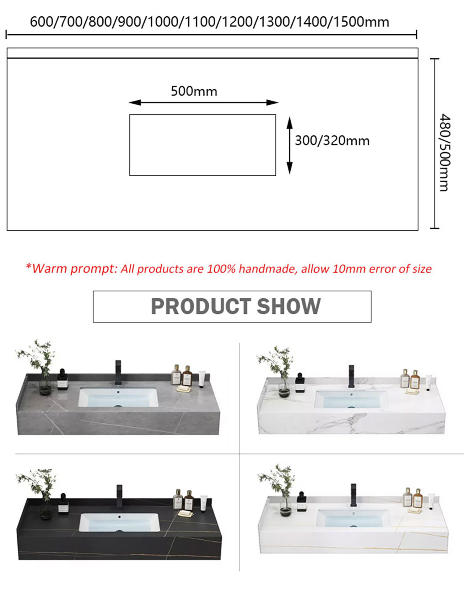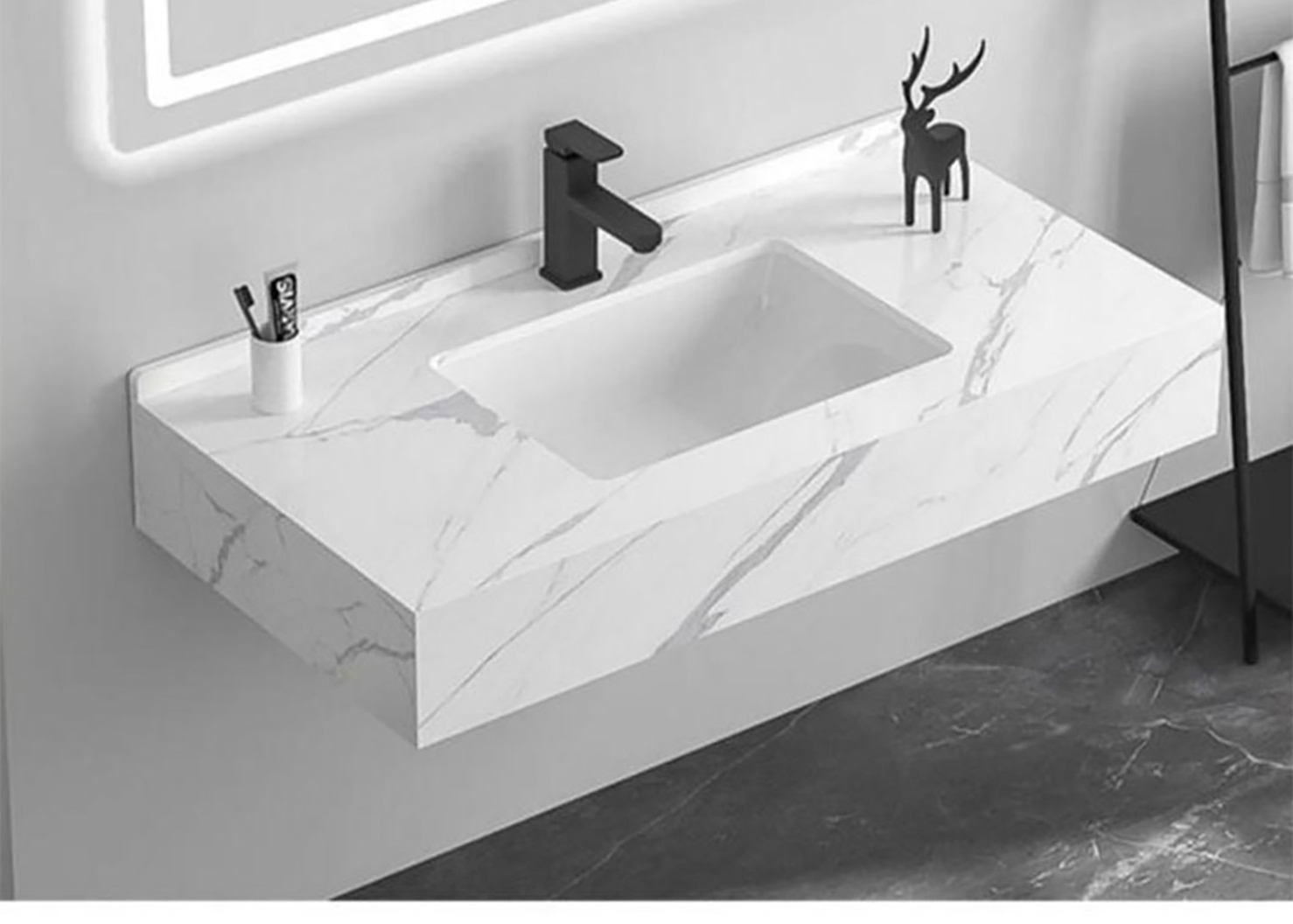 There is a product in the cabinet basin that is very popular in recent years, and the annual sales volume is higher than the historical high. This product can be sold as finished product or semi-finished product. Some cabinet basin manufacturers or wholesalers can pay more attention to this new type of cabinet basin products, called rock plate cabinet basin. For this kind of product, the rock plate material is used as the table top, or the rock plate can also be used as the rock plate integrated basin of the table top and wash basin. Rock plate is a new type of material, which has many excellent properties: heat resistance and durability: rock plate products are fired at a high temperature of 1200 degrees, so that it can resist the thermal environment such as the kitchen and will not burn or emit any harmful substances. Waterproof and antifouling: the water absorption rate of the rock board top is less than 0.02%, which means it is very easy to clean. There are many colors and decorative panels to choose from. Rock slabs are not only attractive, sturdy, easy to maintain and durable, but also affordable. It is cheaper than marble, so if people's budget can be used on the rock slab, they will certainly find a rock slab table with affordable prices. If they already have countertops, but want to improve their appearance in the most cost-effective way, it is a wise choice to install rock slabs on these countertops. Therefore, it is quite cost-effective to make it into a cabinet basin. It can be matched with ceramic wash basins of different sizes under the table. If the manufacturer considers the appearance, we can add the bottom hanging edge to the three sides of the basin. The width of the lower hanging edge is very flexible, which can be 5-15cm. It can also meet the various needs of the cabinet factory.
